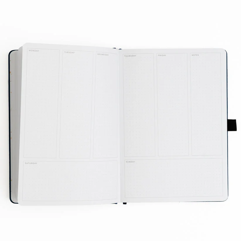 Med denne udaterte planleggeren kan du hoppe rett inn i planlegging av dager, uker og måneder. Designet med fleksibilitet, gir denne planleggeren deg strukturen til å organisere tiden din, uten presset fra faste datoer. Notatboken har et nydelig design og ligger perfekt flatt. Kommer i vakker gaveeske.