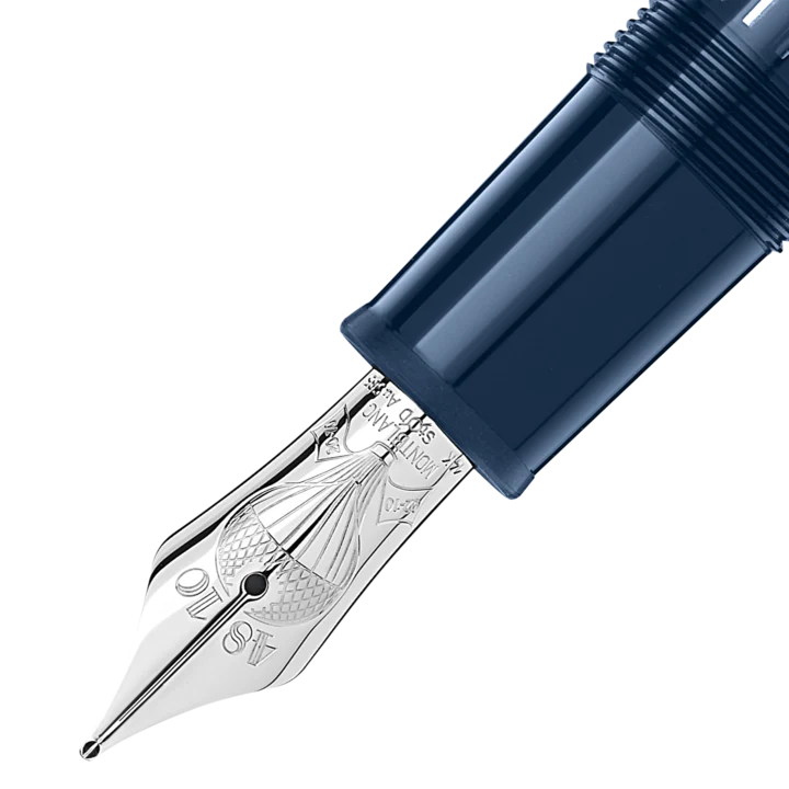 Laget i dypblå edelresin med platinabelagte detaljer og en Medium (M) gullsplitt som gir en presis og myk skriveopplevelse. Et tidløst skriveinstrument som kombinerer eventyrlyst, historiefortelling og Montblancs unike håndverk.