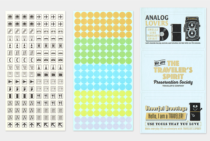 Dette er et klistremerkessett designet for å tilpasse din TRAVELER’S Notebook i 2026-utgaven. Settet inneholder index-stickers, lomme-stickers, ikonstickers for ulike planleggingsbehov, dry transfer (overføringsklistremerker) samt dekorative klistremerker for omslaget.